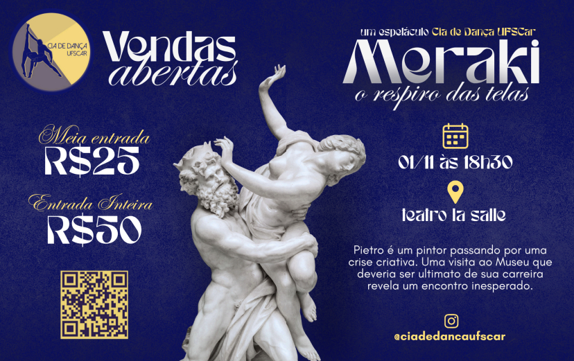 No próximo dia 1° de novembro, a Cia de Dança da Universidade Federal de São Carlos (UFSCar) apresenta Meraki, uma história autoral construída coletivamente pelos integrantes, que ganha vida no palco por meio de coreografias de diversos estilos.