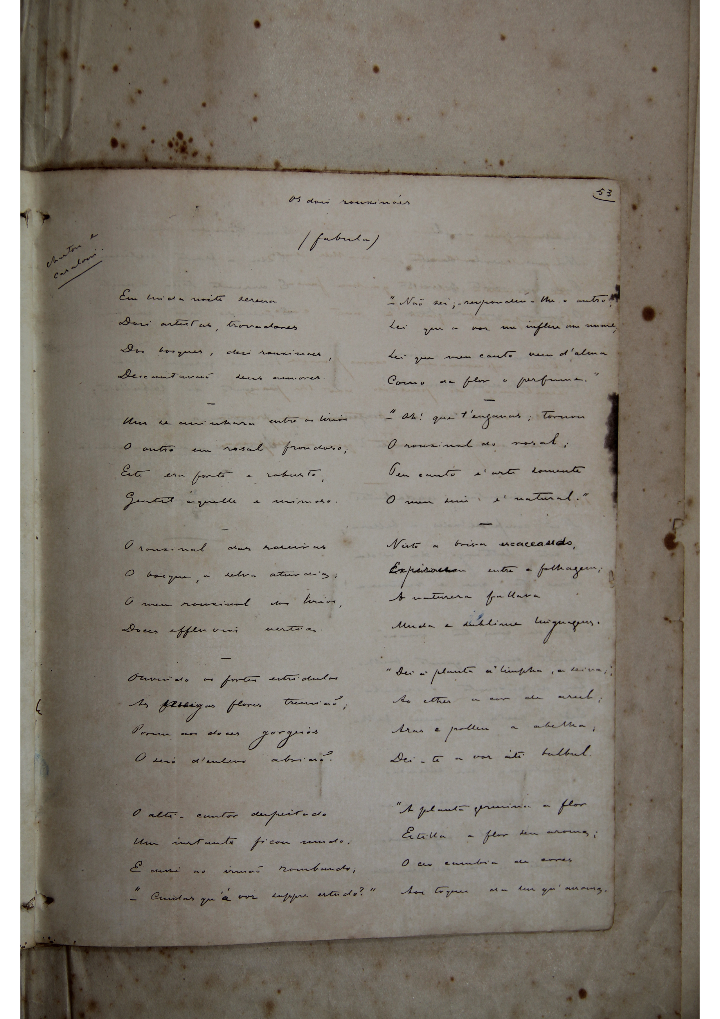 Marques explica que a descoberta ganhou novo fôlego com a colaboração do pesquisador alencariano Marcelo Pellogio, da Universidade Federal do Ceará (UFC). "Tive a felicidade de receber dele a cópia digitalizada do caderno de anotações do próprio Alencar - o Caderno III ("Poesia, Teatro e Diversos") - que, além de me permitir conferir os poemas publicados, alguns com erros de transcrição, também me deu acesso a outros poemas inéditos", relata.