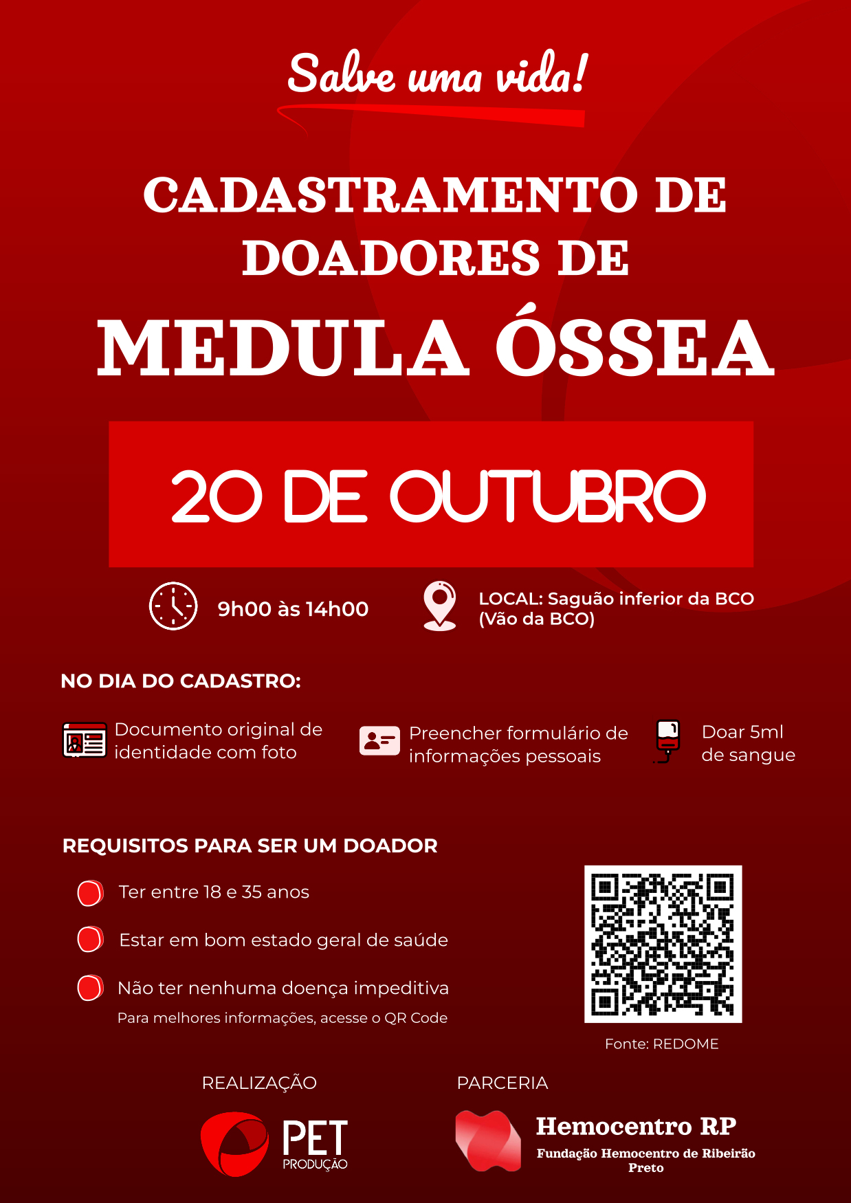 Mais informações podem ser obtidas no cartaz de divulgação do evento (bit.ly/medula-ossea-ufscar).